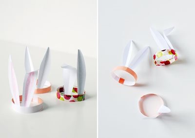 The bunny ears are attached to little headbands which you can decorate with washi tape, make with coloured paper, or just leave them white.