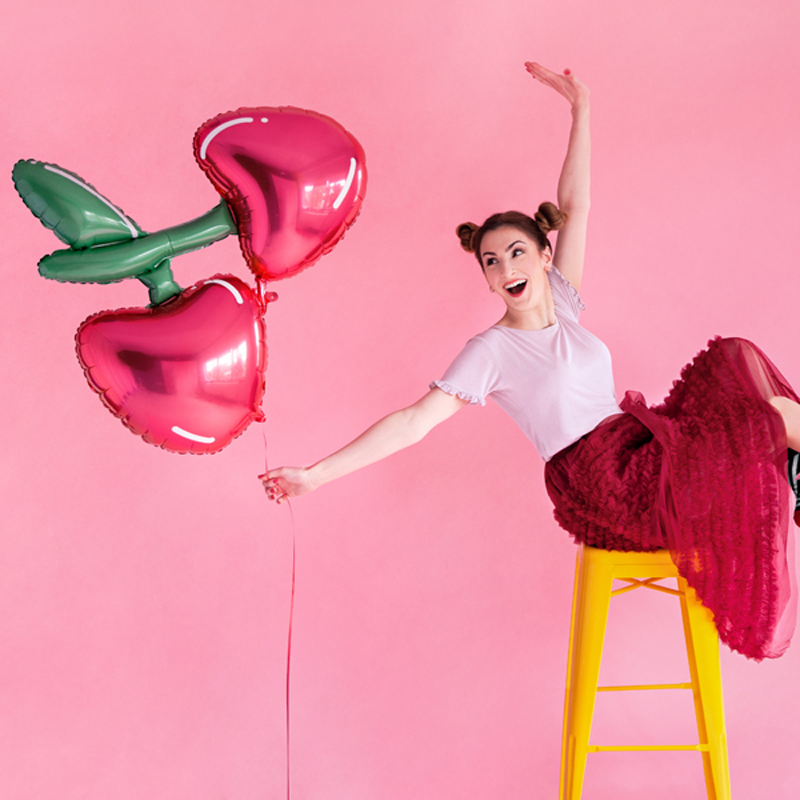 This sweet 34 inch cherry foil balloon will be a quirky addition to an event! Pair with pink, red and green for a fruity design.