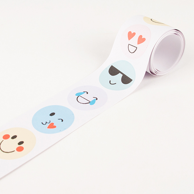 A roll of delightful emoji stickers with hilarious designs all in bright colors.