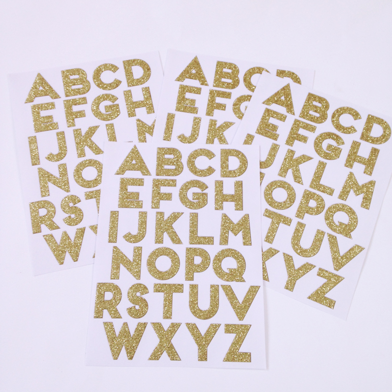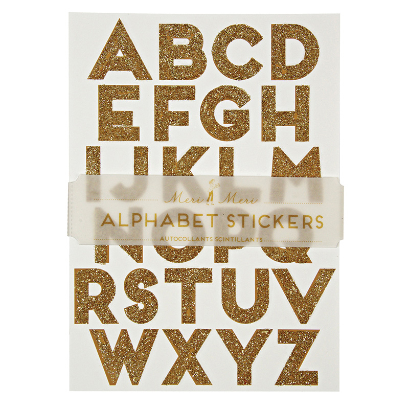 A pack of stickers in gold with a shimmering, glitter finish. Style your gift with a custom message with these decorative alphabet stickers or add a fun message to your Christmas presents.