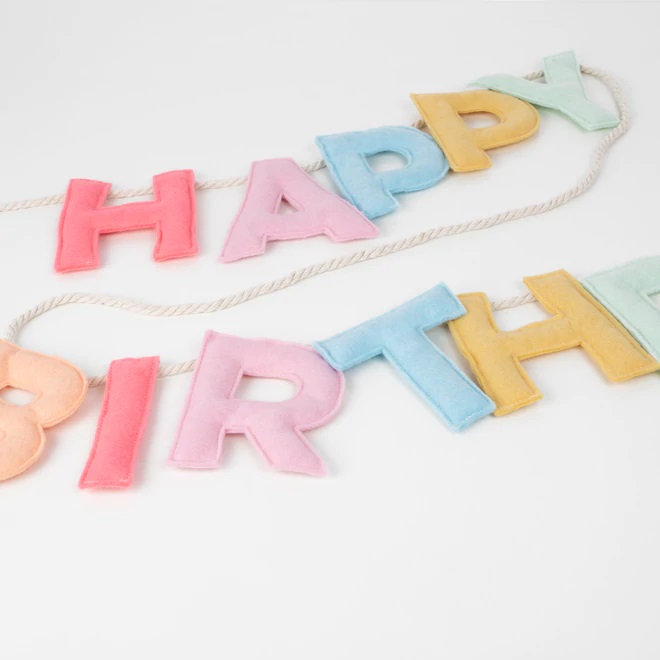 This wonderful garland is destined to be used for birthday celebrations for years to come. The letters are crafted from soft felt, with polyfill for a fabulous 3D effect.