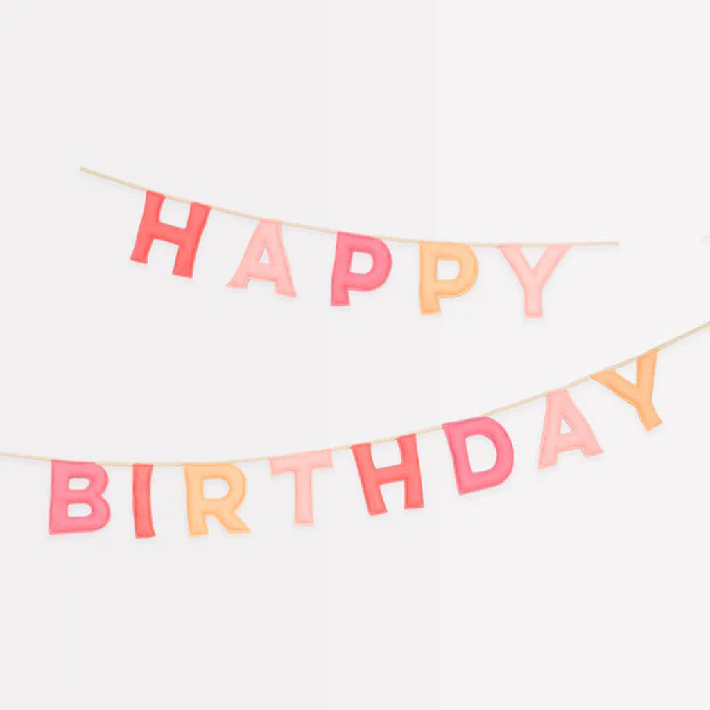 One garland, many celebrations! Honour a special birthday with this statement garland, the perfect way to show heartfelt wishes in style. It's beautifully made from soft felt in pink and peach tones, with a polyfill for a 3D effect. Drape on the party table, hang in a doorway or porch, or on the wall or mantel, for maximum impact. Once the celebrations are over, pack away in the drawstring white organza bag, and reuse party after party.