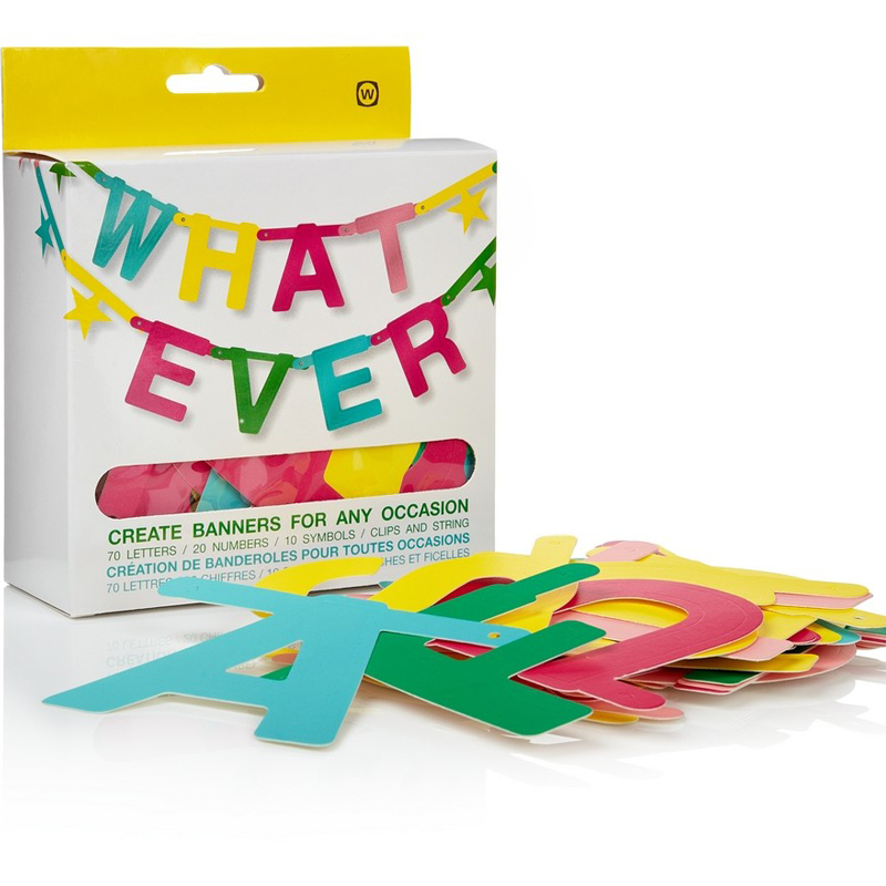 Whatever the occasion, spell out the message on a personalised banner with these re-usable letters. Contains 100 multicoloured letters with spacers, links and hanging strings.
