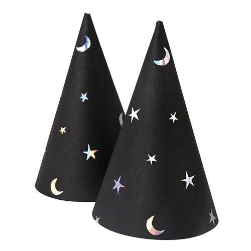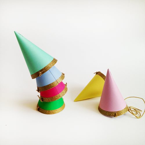 Party hats are a must-have when it comes to a children's birthday party! Whether they are spotted or striped, decorated with diamonds or stars, they make a great addition to any party. Choose between traditional pointy hats or crowns made from silver, pink, black or gold glitter paper.