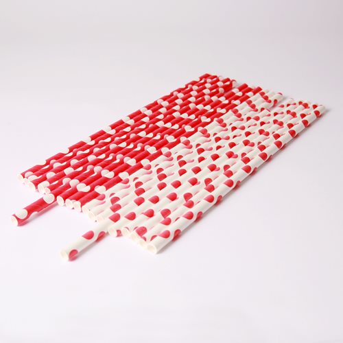 20 red and white polka dot paper straws