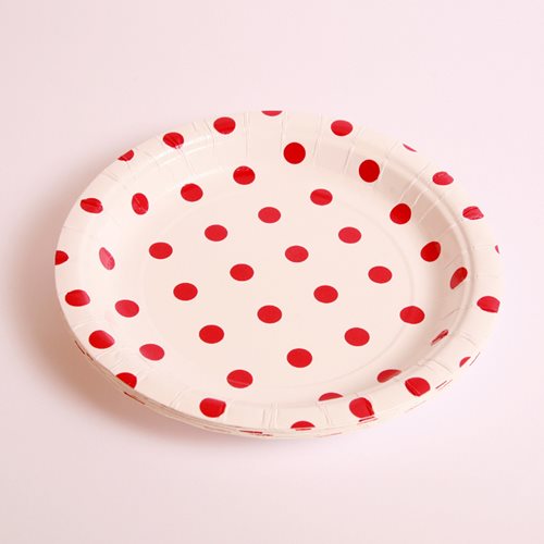 8 red polka dot plates