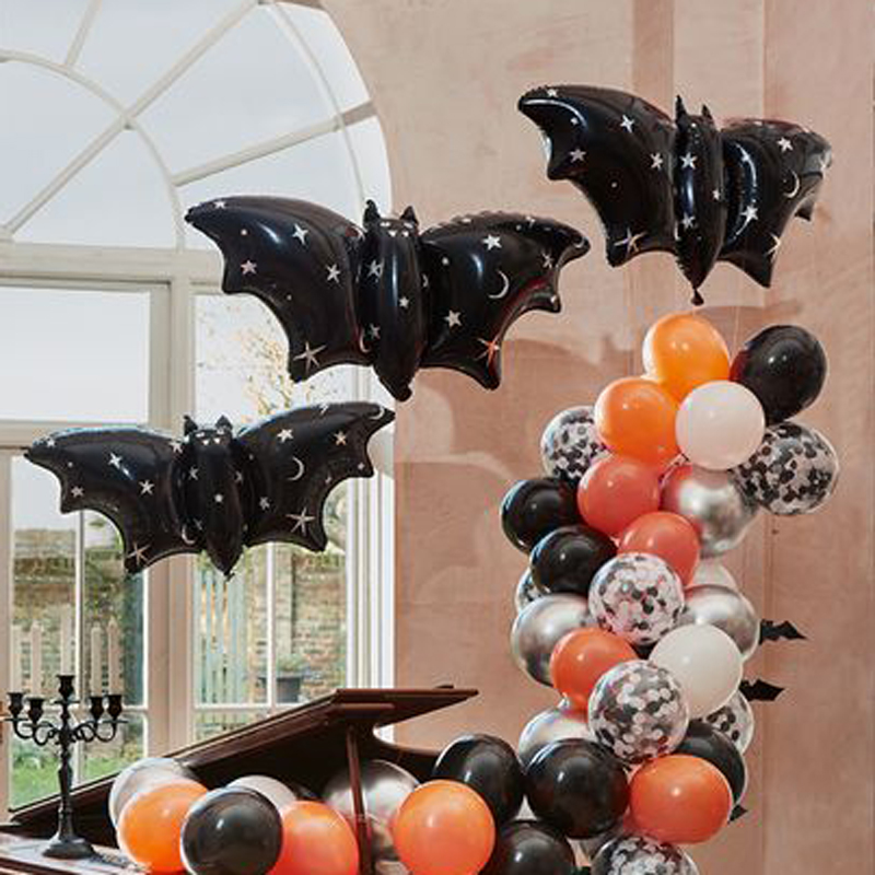 These brilliant bat balloons are an excellent way to decorate your Halloween party room. Featuring silver holographic foil detail, they'll add a scary shimmering touch wherever you hang them.