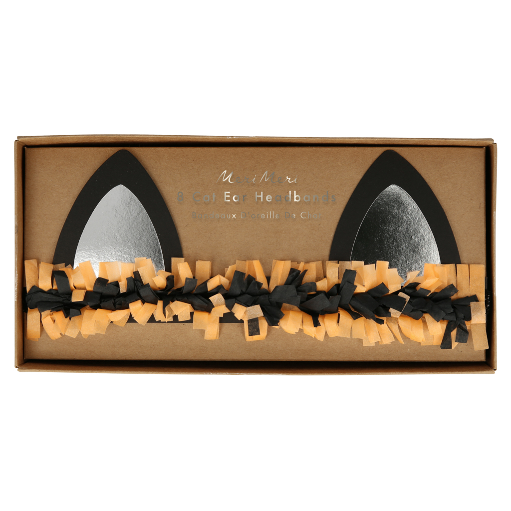 Your party guests can instantly transform into creepy cats with these fabulous headbands. They are festooned with crepe paper in the classic Halloween colours of black and orange.