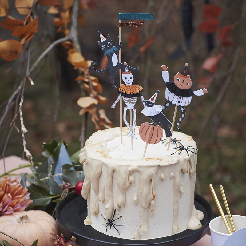 Transform a cake into a really terrific treat with these fabulous Halloween toppers, including a pumpkin, crow, black cat and skeleton. They are beautifully illustrated and designed, with lots of delightful embellishments.