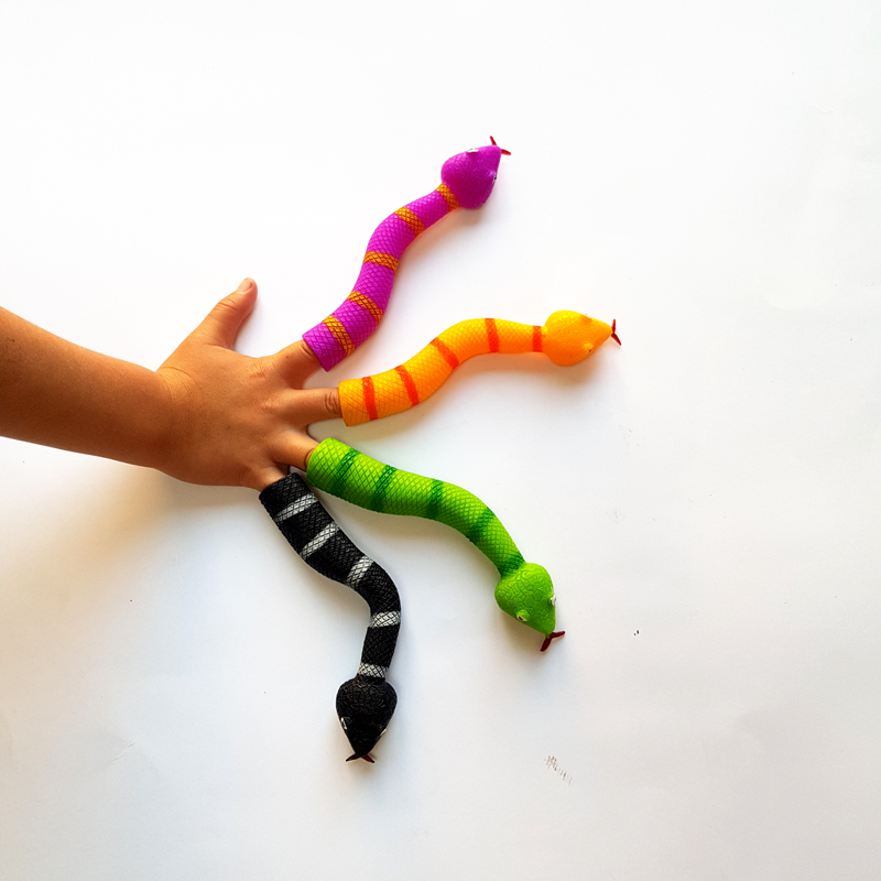 Rubber snakes that fit on your finger are the perfect little party bag fillers for a jungle party.