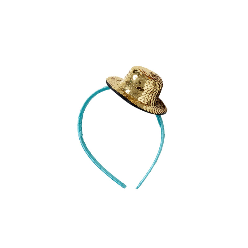 Sparkle at your next party with this mini top hat on a headband. A hairband with a sequin top hat at a jaunty angle - for boys and girls.