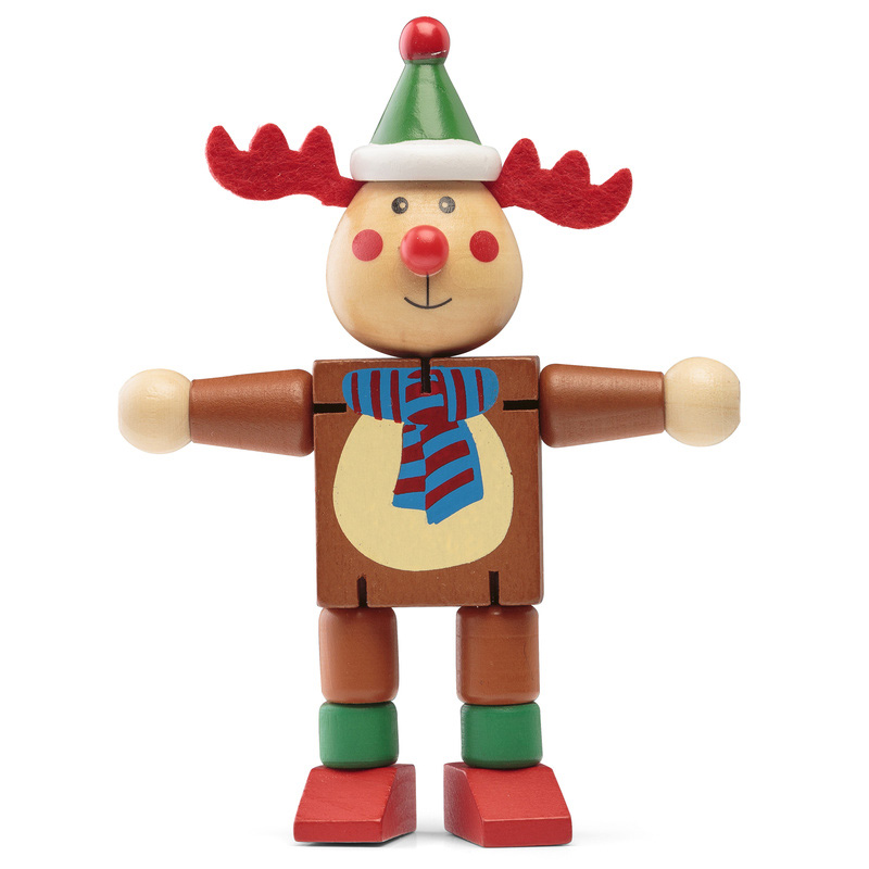 Christmas themed wooden flexi toy in a variety of festive themed character designs. Each figure is made up of a variety of wooden features held in place by elasticated cords that allow the head and limbs to be posed in a variety of ways. These fun little toys make perfect stocking fillers and are a seasonal treat for children of all ages. Designs include Father Christmas, reindeer and snowman.