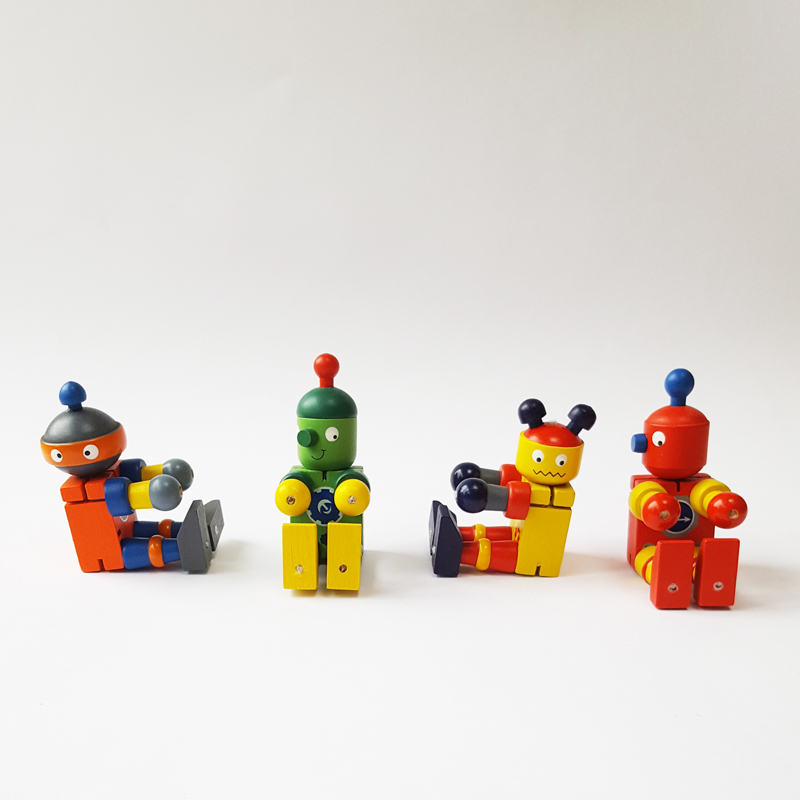 Elasticated cord joins this retro robot's arms, legs and head to his torso, allowing him to assume all kinds of amusing position. Available in 6 different designs so if you have a favourite please do let us know at the checkout.